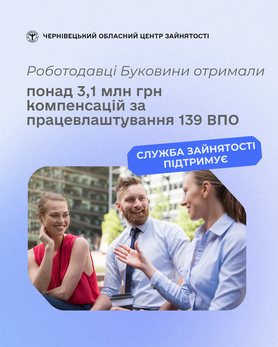 Роботодавці Буковини отримали понад 3,1 млн грн компенсацій за працевлаштування 139 ВПО